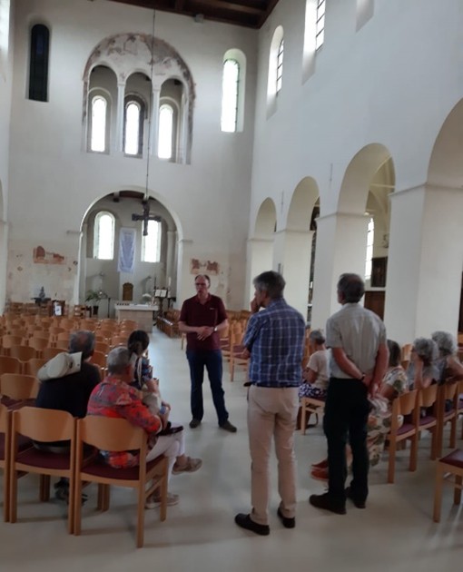 Het namiddagprogramma is al even beloftevol. In Ename bezoeken we de unieke Ottoonse Sint-Laurentiuskerk van omstreeks het jaar 1000 en geeft Guy ons meer inzicht over het belang ervan, mede door de locatie op de grens tussen Rijks- en Kroon-Vlaanderen.